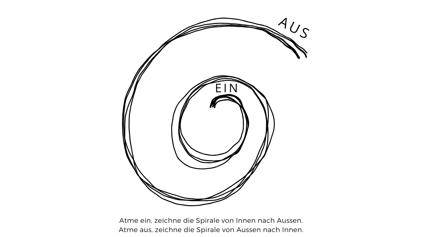 Wenn es dir wohl ist, kannst du diese Form mit deiner Atmung verbinden. Dies bedeutet: Bei der Einatmung zeichnest du die Spirale von Innen nach Aussen. Bei der Ausatmung zeichnest du die Spirale von Aussen nach Innen.